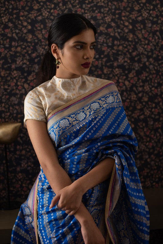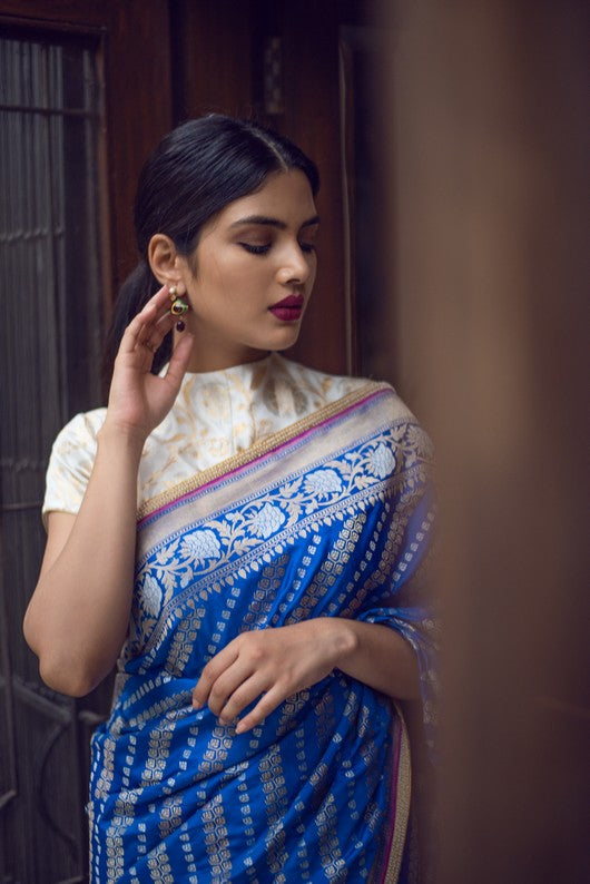 Silk brocade sari with antique zardozi border