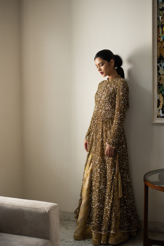 Sania- Gold Tulle Jacket with Sequin