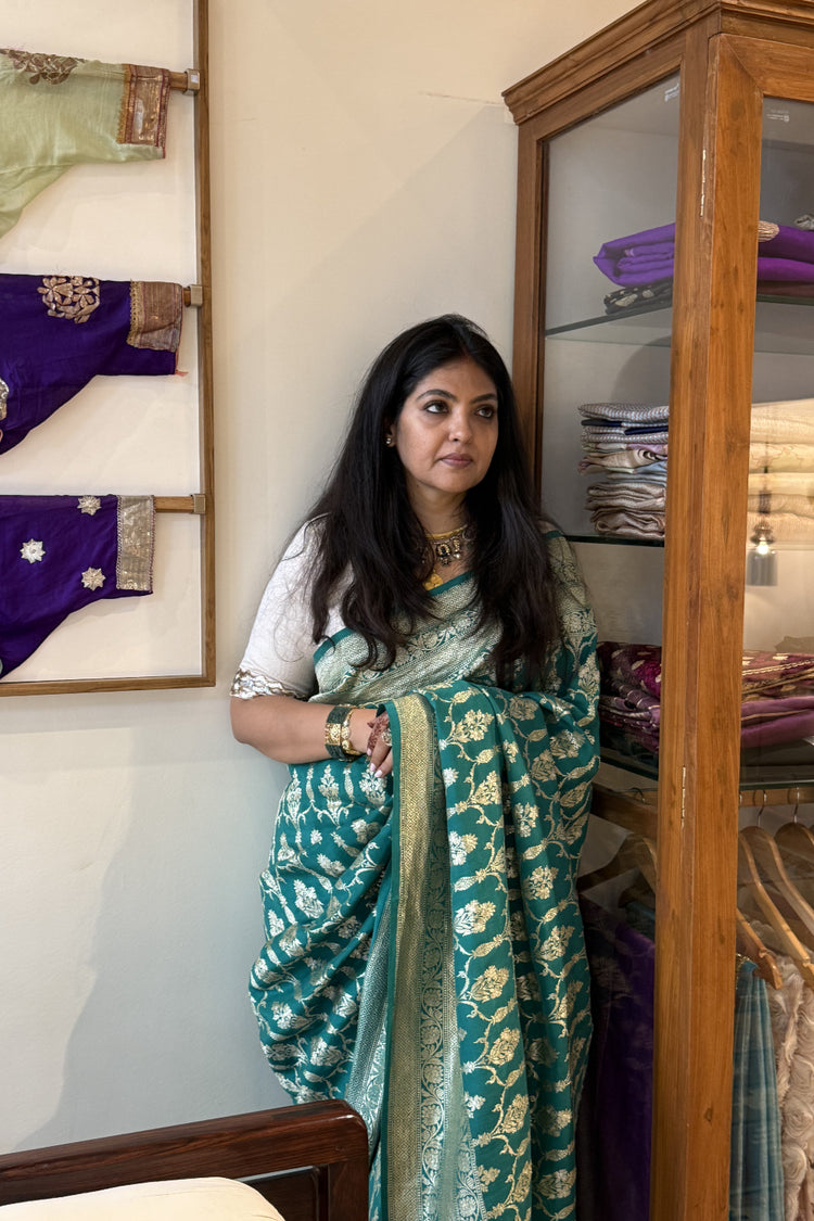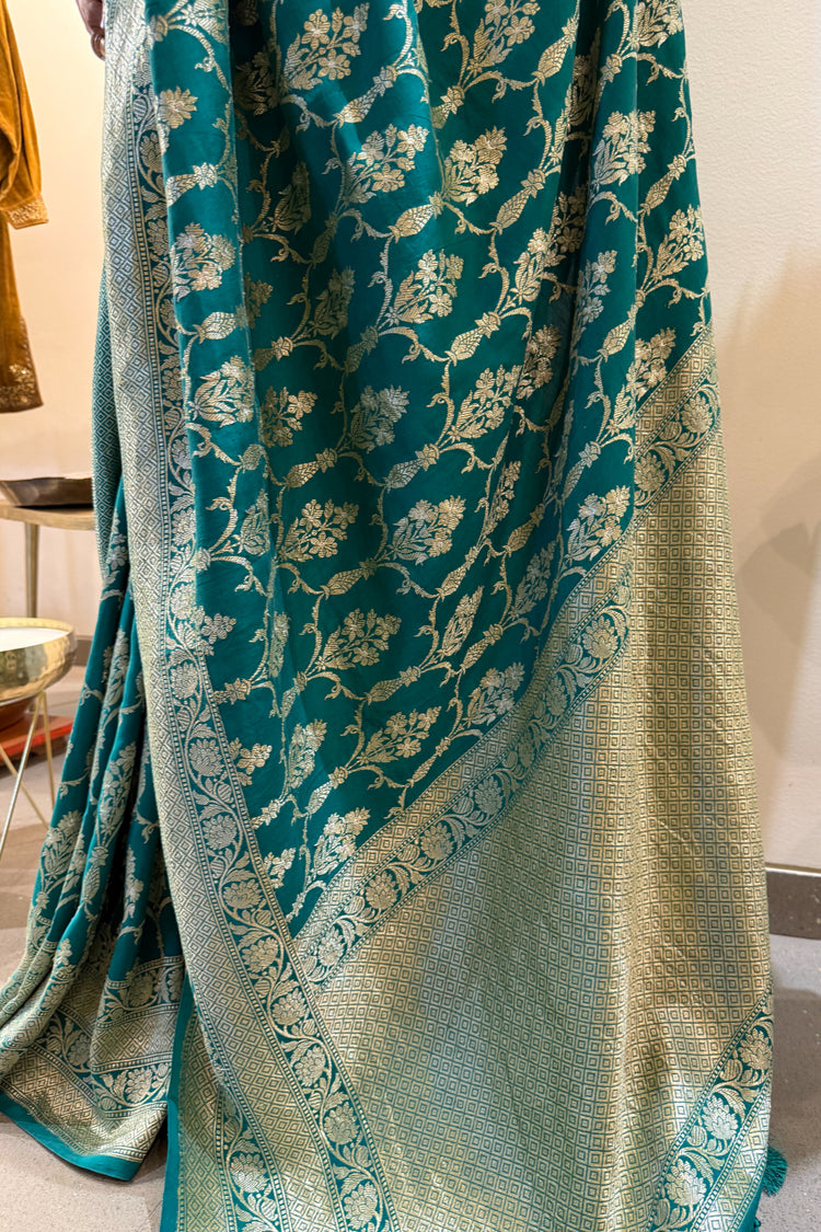 Sarveshvari - Teal Silk Katan Banarasi Saree