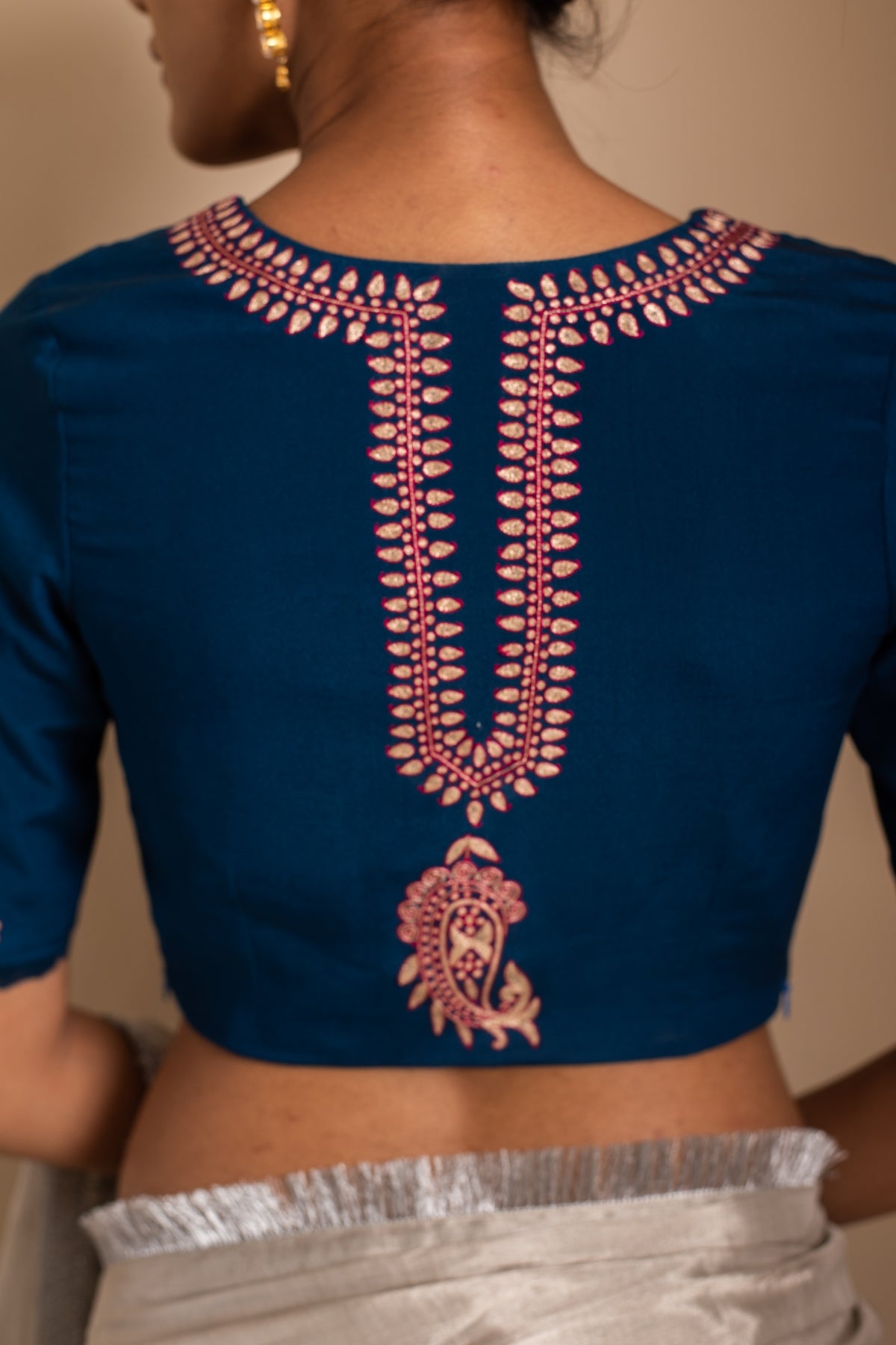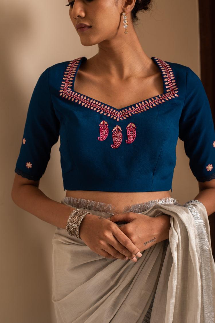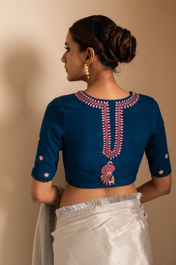 Sov- Navy Blue Silk Hand Embroidered Blouse
